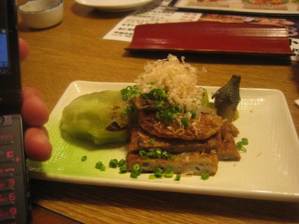 20:29 続いて お酒が大きいのが来ちゃったので、つまみが足らず、追加。 注文は”ジャコ天”と”焼きナス” 関東ではあまりお目にかからないが、ジャコ天は愛媛出身の特産品。 |