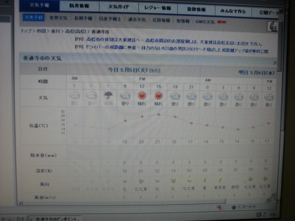 7:56 天気をチェック フロントまで下りて、共用パソコンで天気をチェックすると昼前には天気は回復しそう。 今晩の宿は道後温泉なので、最悪雨が止まなかった場合は高速を使って移動だけの1日にします。 |
