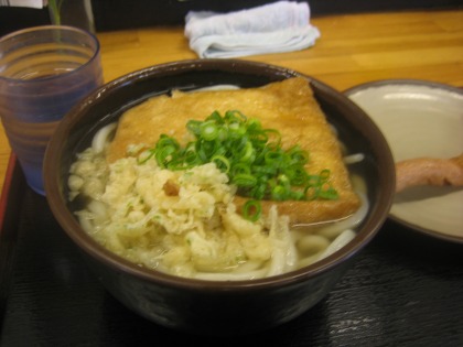 8:04 かけうどん 注文したのは、”かけうどん(中)”。 トッピングは”油揚げ” 関東で言う”きつねうどん”ですね。 (天かすは無料) あとはおかずに、ソーセージのフライ。 以上で¥500。 相変わらず、中盛りは2玉で、量を考えれば、この値段はリーズナブル。 |