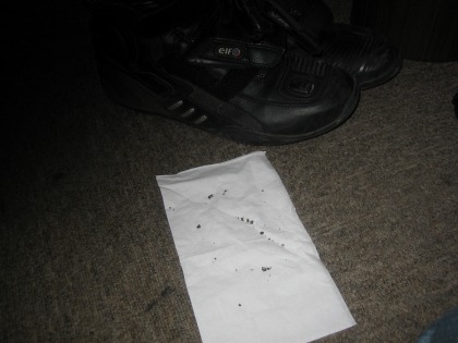 16:51 靴に小石 靴の中は小石だらけ。 ティッシュの上に出してみると、結構ありますね。 『だれだ!入れた奴は』 では、なく走っていると勝手に入ってくる。 相当小石を巻き上げながら走っているんですね。 それだけ、四国の山間部の路面コンディションは悪い。 |