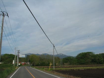 6:23 安達太良山が見えてきました。 二本松ICを出てコンビニに寄って朝食を食べた後、エビスサーキットに向け車を走らせます。 二本松ICからサーキットまでは、約10kmの道のりです。 向こうに日本100名山の一つ安達太良山が見えてきました。 この時期でも、頂上付近には残雪がありますね。 |