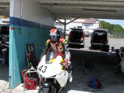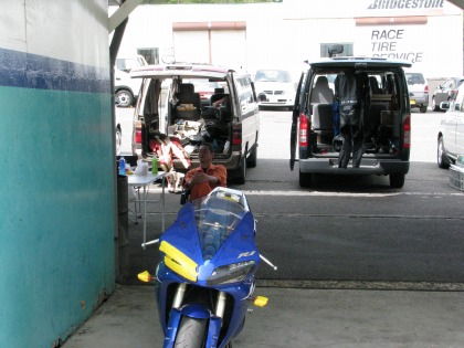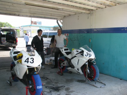 8:26 とりあえず、準備。 サーキットに到着してマシンの準備。 まず、トランスポーターからマシンを下ろして、タイヤのエアー圧をチェック。 タイヤウォーマーを巻いて、一番にタイヤを温めます。 今日は久しぶりにハルナさんと一緒に走ります。 と言うか、CBRに乗っているハルナさんと一緒に走るのは初めてでした。 |