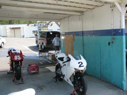 10:16 1走行目終わり 初心者の慣熟走行の後、まずはCBRでコースインして走行。 約1年半ぶりにニュータイヤを履いての走行です。 やっぱ、ニュータイヤはイイ! タイヤがしなやかな感じがします。 滑る気もしないし。(タイムが遅いからね) ただ最初なので、みんな慣れていないこともあり、また、コース上の台数が多いこともあって、流れが悪いですね。 ちょっとタイムアタックは無理そう。 タイヤがもったいないので、6周で走行終了。 ピットに戻ってきました。 |
