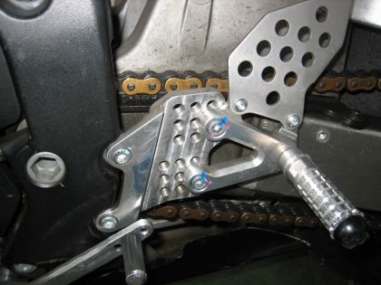 15:39 ステップ位置 前回のエビスで、一番上の一番後ろの位置にステップを戻しました。 今日の練習前に、去年一年乗っていた、高さが真ん中、前後は一番後ろの位置に、再び変更。 一番上にすると、イン側のステップに載ってしまいコーナーリング中イン側のステップの荷重を抜くことが出来ないと思ったから。 と、コンディションが悪いとき、ステップ周りの自由度が高い方が、振られたときとかに対処がしやすいかなぁと思った2点。 |