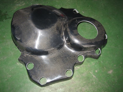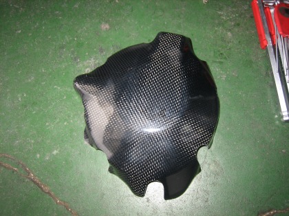 16:46 カバー左側 左側ジェネレータ側のカバー。 クレバーウルフ製¥12,000 これを製品に付属のシリコン系の接着剤でジェネレータカバーに直接貼り付けます。 |