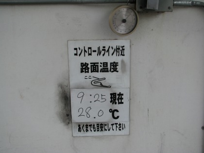 9:45 コンディション ちょっと早いですが走行前のコンディション 気温21.9℃ 路面温度28.0℃ 曇ってはいますが、夏に向かっているこの時期、路面温度は比較的高くなるようです。 |