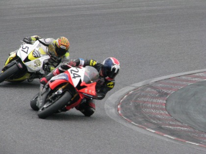 特別スポーツ走行、1本目:10:40〜11:00 TC600クラスの走行が始まりました。 前回、先週の5月30日の練習走行はウェットコンディションでした。 ドライコンディションでの練習は、その前の4月18日と約1カ月半ぶりの練習になります。 コースインするも、やはり最初はペースが上がりません。 少しづつグリップ感を確認しつつペースを上げていきます。 4月に練習したときに比べて路面の温度も十分に上がっているので、思いっきりグリップをあてにした走り方で良いのですが、体が上手く切り替わってくれません。 少しずつペースを上げ13周目、ほぼ2年ぶりに4秒台に。 ホームページで履歴を見ると、2007年7月に転倒して鎖骨を骨折して以来の4秒台でした。 そう言った意味で、本人は気付いて無かったが、スランプ(?)だったのかも。 今日の練習でもリヤタイヤに現在公認のBT003を履くことは無く、1年半落ちのBT002Proを履いての練習です。 結局、BT003はレースぶっつけ本番で使用することになりました。(汗) |