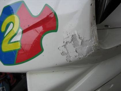 9:06 よく目立ちます フロントのカウルに付けた”K2Y”のステッカー。 でかくて、よく目立ちます。 これだけ大きいとピットクルーの人は見つけやすくて楽ですね。 |