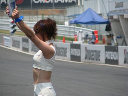 12:09 レースクイーンも近い 2列目だとレースクイーンも近い。 う~ん、カワイイ! |