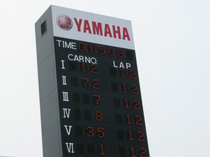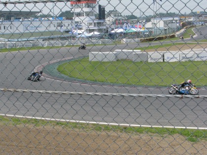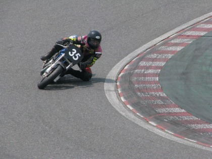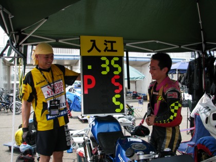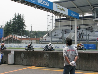 12:30 終了 レース終了! マシントラブルを抱えたまま、5位フィニッシュです。 上位1~4位までがすべて500cc以上ですから、中型の350ccでよく健闘しました。 さすが、”中型の星”。 |