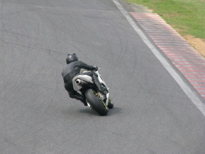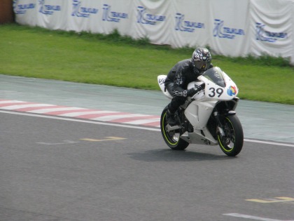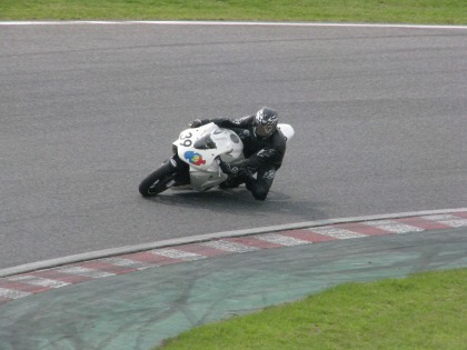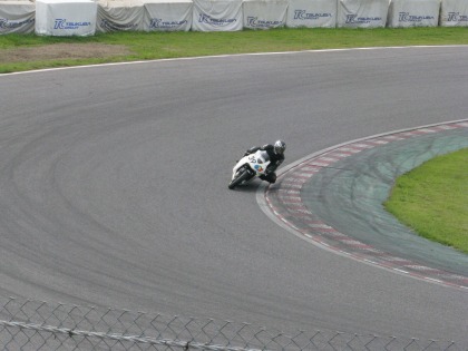 14:24 最終コーナ入口 1ヘアピンのスタンドから後ろを振り返って、最終コーナー入口の写真を撮ってみました。 自分から見た限り、コーナー入り口での旋回性がイマイチの様に見えましたが・・・よくわからん。 |