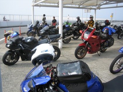 7:34 西湘PAに到着 自宅のある横須賀を出発して小1時間、西湘バイパスのパーキングに到着しました。 今日は天気がイマイチですが、駐輪場はバイクで一杯、春先にどこに行ったか心配をした(?)スーパースポーツも、結構な台数が駐輪していました。 |
