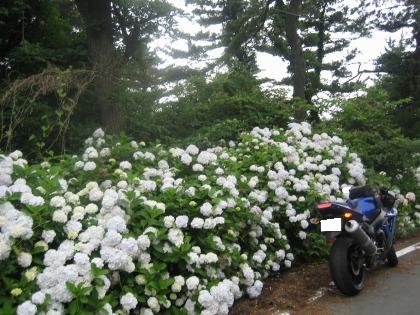 8:21 白いあじさい 南足柄広域農道から県道78号御殿場大井線に入り西走し、足柄峠まできました。 あじさいの季節になりました。 途中、道の両側に時折あじさいの花を見ることができます。 足柄峠まできて、白いあじさいが咲いていました。 自分は花には興味がありませんが、白いあじさいって珍しいですね。 あじさいって紫陽花って書くぐらいですから、紫とか淡いピンク色が普通だと思ってました。 小学校の時、あじさいの花の色は土壌のphによって変わると習った記憶があるんですが、白いあじさいって、土壌は何? (種類が違うそうです) |