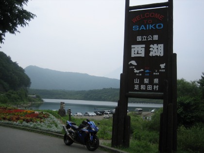 9:45 久々に西湖に 河口湖大橋を渡り、すぐに左折して県道21号河口湖上九一色線へ。 河口湖の北岸を西走し久々に西湖まできました。 自分がまだ2スト250を乗っていた1995年頃までは、この富士五湖は時々訪れていましたが、乗るバイクがリッターバイクに代わり、足が長くなったこともあり、この西湖からは足が遠ざかっていました。 |