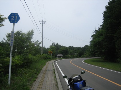 9:54 県道21号河口湖上九一色線 西湖を後にして、県道21号河口湖上九一色線を西走し、国道139号線を目指します。 西湖沿いの県道21号線は、以前は湖に沿って非常にタイトコーナーが連続するセンターラインの無い県道だった記憶がありましたが、今はきれいに整備され、片側1車線のセンターラインのある県道に改良された様です。 改良された県道は、タイトな急カーブなどもなくなり、それでも中低速コーナーが主体ですが、交通量も少なく快適に走れる路線になっていました。 (河口湖の国道137号線から分岐して、西湖の国道139号線に至まで、約17kmの区間です) |