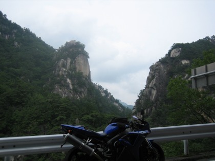 11:29 覚円峰 写真左手の岩山が、昇仙峡のシンボル的な山”覚円峰”(かくえんぼう)だそうです。 昇仙峡の川沿いに設置された道は遊歩道で、車両の進入ができません。 そのため渓谷には滝などの観光スポットがありますが、車から直接見ることはできません。 昇仙峡と並行に走る県道7号線も山間部の道ですが、バイクで快適に走る、と言うよりも、昇仙峡に行くための移動路と位置づけた方がよさそうです。 |