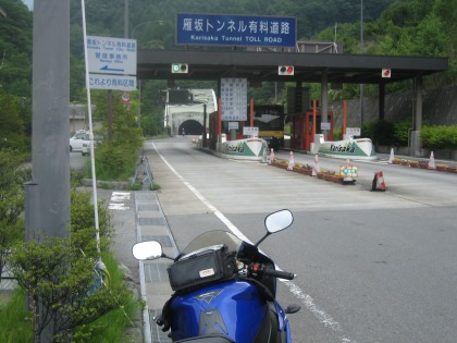 12:43 料金所に到着 国道140号線を北上し、雁坂トンネルの料金所まできました。 国道なので、てっきりETCが使えるものと思っていましたが、管理は”山梨県道路公社”と言うことでキャッシュオンリー。(いつもニコニコ現金払い) しかも、二輪車(軽自動車)の通行料金は¥560と、グローブをはめた手では払いにくい金額設定。 せめてワンコイン(¥500)にして! と言うか、ETCを使えるようにして欲しいなぁ。 |