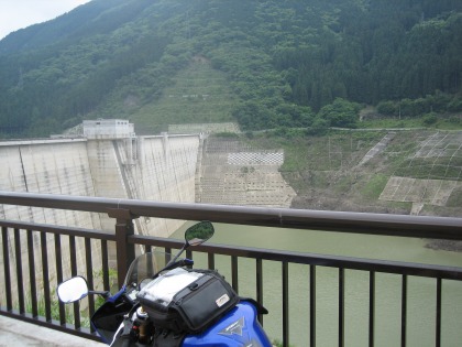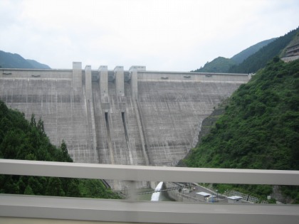 13:04 奥秩父もみじ湖 埼玉県に入り、国道140号線を北東に進み、滝沢ダムまできました。 写真は上流に位置するダム湖の”奥秩父もみじ湖”側。 ダム湖の水位が低いので、梅雨の大雨に備えて、水位を低くしているのかと思いきや、2008年まで行われた試験湛水によって顕在化した問題点を解決中。 本格的な運用は始まっていないとのこと。 |
