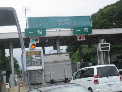 16:48 八王子バイパス 八王子ICで中央道を下りた後、国道16号線を少し走って、八王子バイパスへ。 八王子バイパスは、軽自動と二輪の料金枠設定がなく、普通車扱い。 「げっ!250円。高い!」 ただし、ETCの(休日?)割引で130円。 130円なら、八王子市街地のブタ混みを考えると、まあ、許容範囲。 |