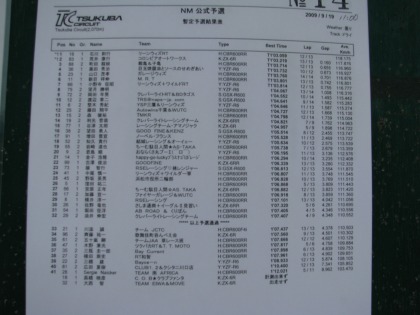 11:56 NMクラス 前回、ハルナ海坊主さんが優勝したNMクラス。 予選結果が張り出されていたので、のぞいてみると、1分3秒台が7台、4秒台が8台もいるじゃありませんか! しかも、エントリーが42台でグリッドが32台なので、10台は予選落ち。 微妙にレベルが上がっているような気がするんですが? (^^;) 自分の出番は、もはやないか? |