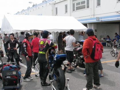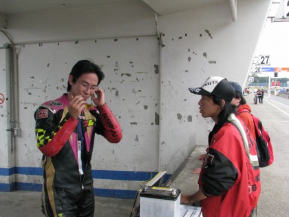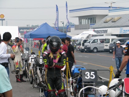 12:48 パドックにて マシンチェック後、パドックにマシンを並べ、ヘルメット、グローブを付け、決勝へ向け準備。 集中力を高めていきます。 |