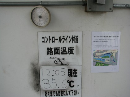 12:43 コンディション 決勝前のコンディション。 気温 26.6℃ 路面温度 12:05の時点で 35.6℃ それほど暑くもなく、いいコンディションです。 |