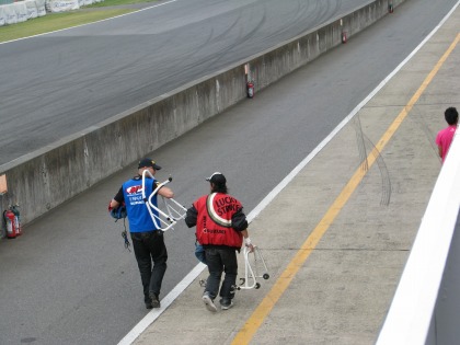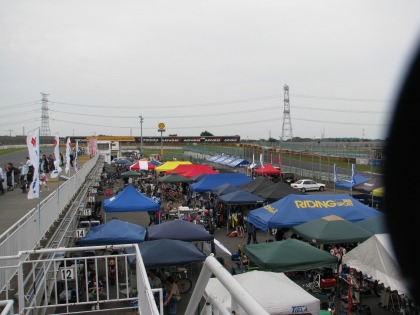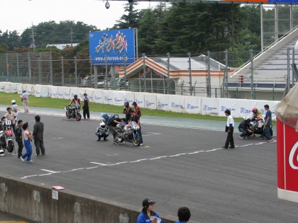 12:34 スタート進行 まもなく12:40からスタート進行が始まります。 パドックにマシンを移動するのが少し早すぎました。 決勝前のマシンチェックが始まっておらず、待ちの状態。 せっかく温ためたタイヤが冷めちゃうよ~。 |