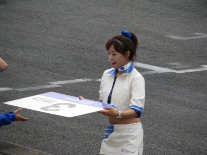 12:54 レースクイーン登場 筑波サーキットクィーンの登場。 よい眺めでふ。 前回6月のツーリスト・トロフィ以来、3か月ぶりでございます。 |