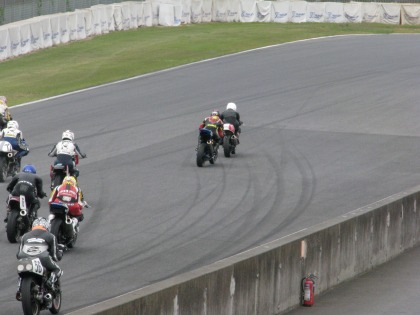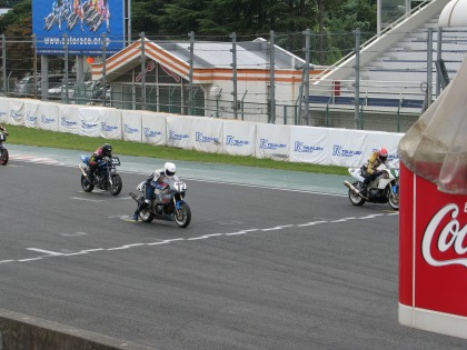 13:02 レーススタート 今度は本番。 NS1クラスは12周回で争われます。 日章旗が振り下ろされ、レーススタート! |