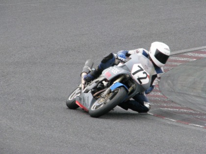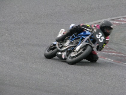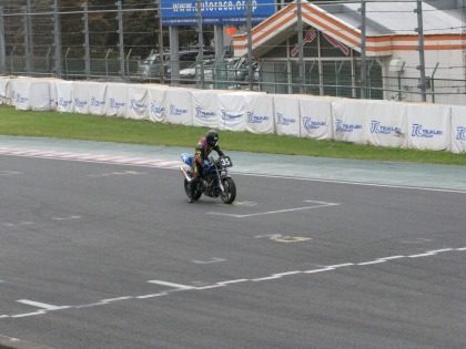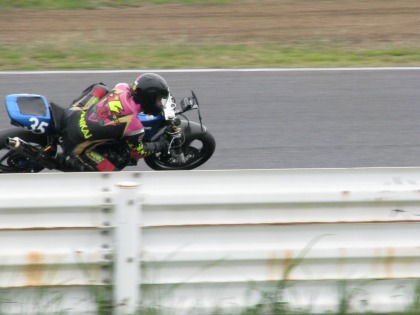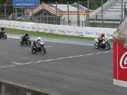 13:01 ??? スタートできない? エンジンがかからない? じゃなくて、写真のトリック。 上の写真は、ウォーミングアップランのスタート。 そして、左の写真は、一番最初に帰ってきて、グリッドに一番乗りした入江選手。 気合い入ってます。 |