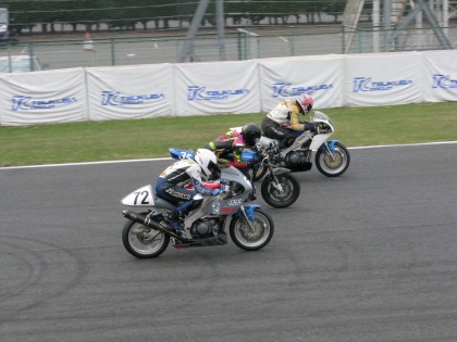 13:05 3周目 1ヘアピン ホームストレートでスタートを見送ったあと、1ヘアピンまで急いで移動。 すでに、3周目まで消化しています。 トップは、ポールスタートのSRZ660 |