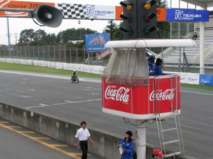 13:16 レース終了 レース終了! チェッカーを受けるところを写真に撮ろうとおもい、急いでホームストレッチに戻り、シャッターを押すと・・・ ちょうど、入江選手がコントロールタワーの裏にいるとき、シャッターが切れました。 (-_-;) シャッターチャンス逃がした。 orz 詳細のリザルトは以下へ。 http://www.jasc.or.jp/result/2009/2/090919_r.html#race4 |