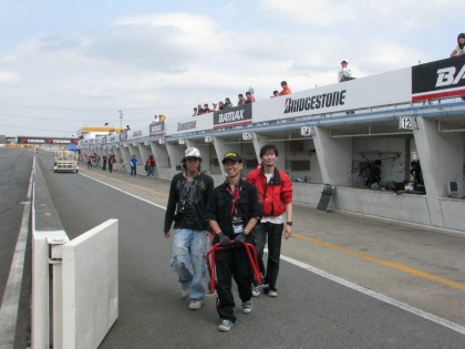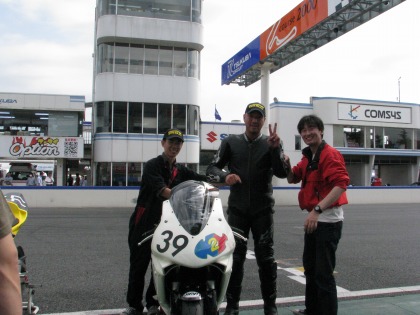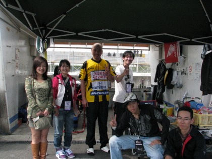 11:42 みんなで 表彰後、ピットに戻ってみんなで記念撮影。 今回ヘルパーは入江君、浦川君とまるえさんの3人。 あと、応援にきてくれた、ハルナ海坊主さんの友達のマユカさんとクミ魔さん。(名前はハルナ海坊主さんのカキコミから転載) やっぱ、女の人がきてくれるとピットが明るくなりますね。 |