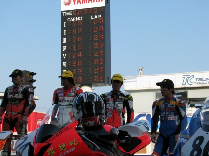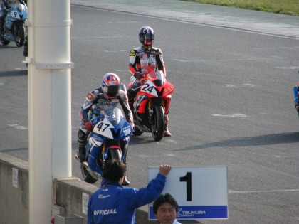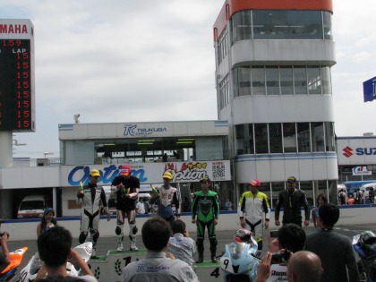 11:25 表彰台 ハルナ海坊主選手、6位入賞おめでとう! こうしてみると、表彰台はBSとDUNLOPそれにPIRELLIと3メーカーが入り乱れての混戦です。 |