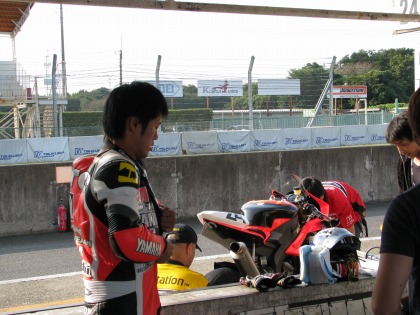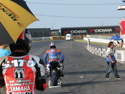 10:40 TC600スタート進行 ST600の予選が終了して、急いでパドックまで戻ってきました。 パドックではTC600のスタート進行が始まっています。 結構、忙しいねぇ。(^o^;) |