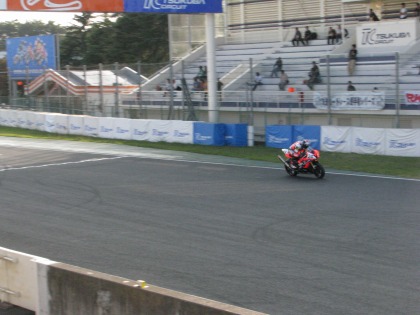 15:37 レース終了 佐藤選手、5位でフィニッシュ! 20周回のレース終了です。 ※ 正式な結果は、下記の筑波サーキットのHPで! http://www.jasc.or.jp/result/2009/2/091004_challenge.html#race8 |
