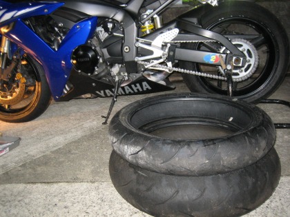 09年10月25日 R1 タイヤ交換、フロントブレーキパッド交換