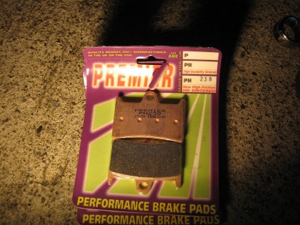20:37 PREMIERに交換 選んだパッドは、PREMIER。 のシンタードタイプ 今まで使ったことが無いんですが、K2Yのアイスエイジさんのお薦め。 お値段もお安い。 今回は交換しただけで、実際に走っていないので、インプレッションは後日。と言うことで。 PREMIERのブレーキパッドのインプレッション はこちら 2009/10/27 追記 |