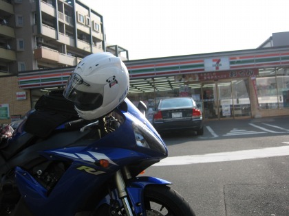 8:44 待ち合わせ場所 東名横浜IC近くにある、待ち合わせ場所のセブンイレブンに到着しました。 ちょっと早めに到着して、他のメンバーを待ちながら、軽い朝食にします。 |