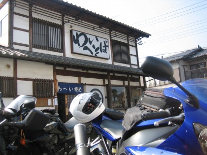 12:25 昼食です 今日の昼食は秩父の市街地にある”わへいそば”さんです。 今回のツーリングの主催、佐藤プーさんお気に入りのお店です。 ”わへいそば”さんは、くるみ汁が有名なお店です。 土曜日の昼ちょっと過ぎと言うことで、5分ほど待っての入店です。 |
