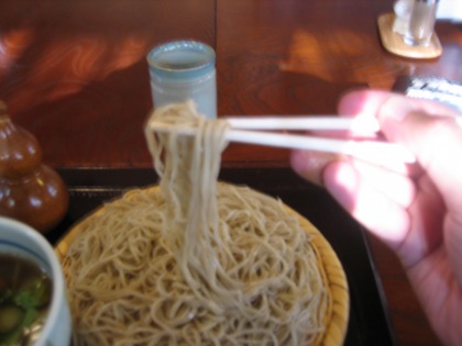 12:50 いただきます それでは、いただきます。 蕎麦は細めに打たれていますが、粗挽きということもあるのか、やや短めです。 まず、海苔をどけて、ソバだけで。 新蕎麦と言うことですが、香りはちょっと少ないかなぁ。 蕎麦が粗挽きなのが関係しているかもしれません。 粗挽きの蕎麦は、噛んで食べます。 噛んだときに、粉が粉砕され、新たに蕎麦の香りが立つらしいです。 と、教えてくれたのは、山中湖のそば屋”すぎやま”のご主人です。 比較して、細かく挽かれる普通の(江戸)蕎麦は、粒子が細かいため、打ってから時間が経つと香りが飛んでしまいがちです。 一般に粗挽きの方が香りが強いと思われていますが、それはこんな理由で食べるタイミングや噛んで食べるか、つるつるっと食べるかで変わってくるようです。 。 |