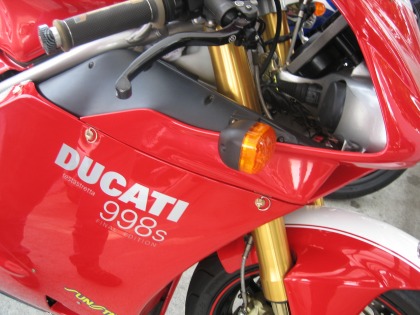 9:15 今日のマシンは 今日のマシンは・・・・ DOCATIの998、しかも”s”(汗)。 (お釜掘らないよう、気を付けよう!) |
