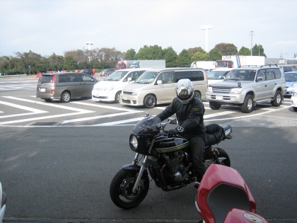 9:29 Zephyrハルナ海坊主さん 集合時間のギリの到着は、Zephyrハルナ海坊主さん。 ここ1年ほど、筑波サーキットで一緒したりしてますが、一緒に走ったのは、筑波の第2戦のみ。 よく考えれば、ツーリングは一緒したことがありませんでした。 Zephyrハルナ海坊主さんの仕事の関係で、去年までは休日の休みがほとんどなし、今年に入って日曜日が休みになりました。 そんなわけで、レースシーズン中、『今度、ツーリングに行きましょう!』とか、言っていたのを今回実現。 |