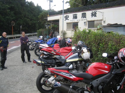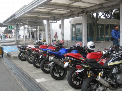 アイスエイジさん(DUCATI 998S) おしあ さん(KAWASAKI ZRX1100) 岩井さん(DUCATI 996) エビナさん(YAMAHA YZF-R6) コシカワドラえもん さん(HONDA CBR1000RR) Zephyrハルナ海坊主さん(KAWASAKI ゼファー1100) ドイツ製耕運機さん(BMW R1150R) と あるじ (YAMAHA YZF-R1) 大体あいうえを順 |