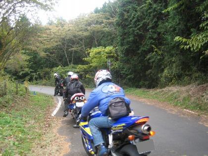 12:28 箱根の林道へ 御殿場市内で休憩した後、本日のメインイベント、箱根の林道へ。 路面の両脇には、枯れ葉が落ちて、道幅が必要以上に狭い。 初めは、自分が先頭で、いざスタート! |