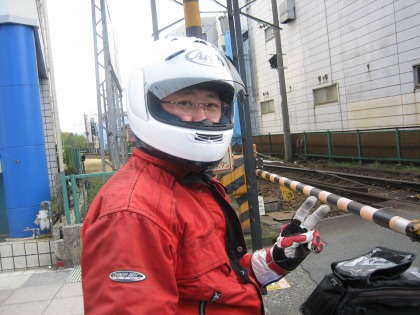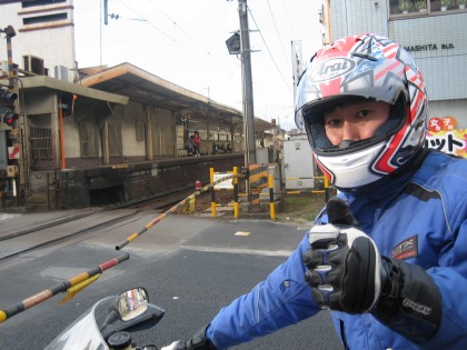 13:53 あるじ登場 踏切で遮断機が下りて、電車の通過待ち。 コシドラちゃんにカメラを渡し、写真を撮ってもらいました。 たまには、登場しないとネ。 |