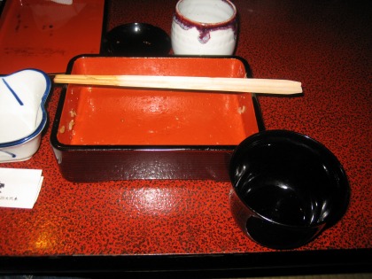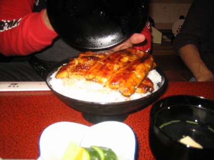 14:58 完食 普段食べているスーパーのうなぎを食べてから、ここのうなぎを食べると、当然美味いなぁ〜。と思います。 でも、値段も、いい値段するなぁ。と感じます。 でも、ここのうなぎを食べてから、しばらくしてスーパーとかのうなぎを食べると、愕然としてしまいます。(美味しいものに対する”慣れ”って恐いですね) やはり、うなぎの蒲焼きは焼きたてが一番、パックしてしまうとダメですね。 (しつこいようですが、スーパーのパック品と比較するのは間違いですが・・・(汗)) 『ご馳走様でした。美味しゅうございました。』 ※ と言うことで、自分自身普段はパックのうなぎを食べることは、殆どなくなりました。 |