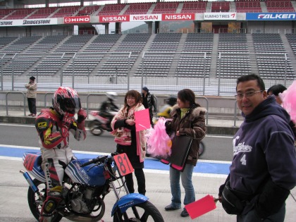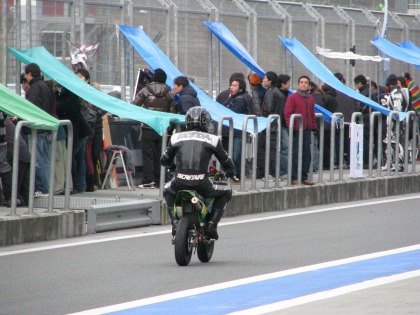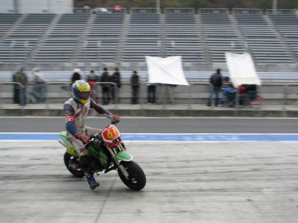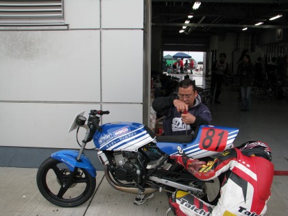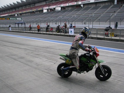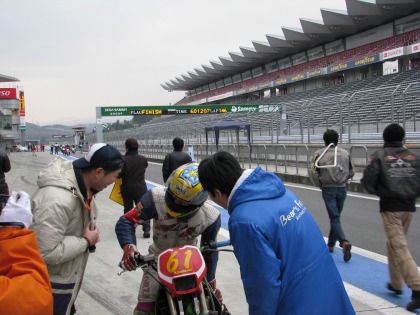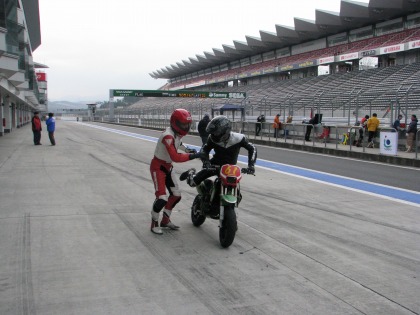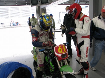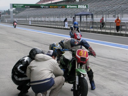 15:03 大丈夫だったみたいです。 無事、ピットアウト。 ちなみに、KSRは普段のIKEZOくんのゲタバイクです。 |