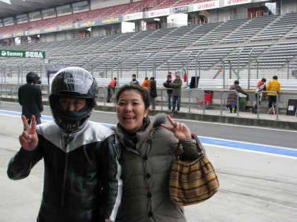 12:47 メインスタンド でかっ! 普段、筑波サーキットの鉄骨むき出しのメインスタンドを見慣れている自分。 富士のメインスタンド、でかっ! (^_^;) 真ん中に置いた、R1が小さく見えます! |
