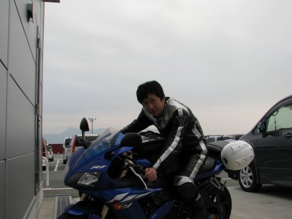 15:48 撤収します ピットはまだまだ、レースの余韻に盛り上がっていますが、自分は雨が降り出しそうなので、早々に撤収することにします。 って、なぜか最後に自分のR1に跨って、IKEZOくんが記念撮影。 |